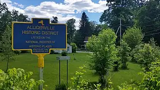 Alligerville Historic District is a national historic district located at Alligerville, Ulster County, New York. It encompasses 81 contributing buildings, 5 contributing sites, and 8 contributing structures in the hamlet of Alligerville. It developed after 1828 around Lock 21 (originally Lock 22) on the Delaware and Hudson Canal and includes notable examples of Greek Revival, Gothic Revival, and Italian Villa architecture. Notable contributing resources include the John & Catrina Alliger House (c. 1828), Reformed Dutch Church of the Clove Chapel (c. 1858), Ira Brodhead House (c. 1851), John Forbes Hotel (c. 1868), Alligerville Post Office (c. 1920), Thomas S. Schoonmaker Farm (1830), Union Free District No. 1 School (1878, 1966), Canal Outbuilding (c. 1850), Hall-Latinville Summer Cottages (c. 1935), and Hall-Barrett Summer Cottage (c. 1935).[2]