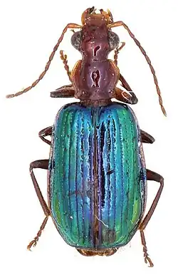 - ^ a b c d Shi, Hongliang; Zhou, Hongzhang; Liang, Hongbin (2013). "Taxonomic synopsis of the subtribe Physoderina (Coleoptera, Carabidae, Lebiini), with species revisions of eight genera". ZooKeys (284): 60–62. doi:10.3897/zookeys.284.3983. PMC 3677377. PMID 23794843.
