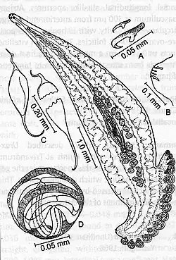 - ^ a b c d e Unnithan, R. Viswanathan (2009). "On the functional morphology of a new fauna of Monogenoidea on fishes from Trivandrum and environs Part II. Opisthogynidae fam.nov. (Gastrocotyloidea) and Abortipedinae subfam.nov. (Protomicrocotyloidea)". Parasitology. 52 (3–4): 315–351. doi:10.1017/S0031182000027190. ISSN 0031-1820.
