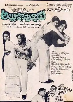 Allullostunnaru (English: Sons-in-law are coming) is a 1984 Telugu film directed by K. Vasu. The film stars Chandra Mohan, Chiranjeevi, Sulakshana and Geetha in important roles. The core story finds similarities with the plotline of Hindi movie Andaz Apna Apna [1] which was again later made in Telugu as Veedevadandi Babu. Similar storyline was later found in other Hindi movies such as Joru Ka Ghulam and Jodi No. 1. The music was composed by K. V. Mahadevan.
