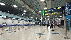 Terminal 2 at Almaty International Airport opened on 1 June 2024, exclusively serving international flights.[20] Construction began around 2022 after TAV Airports took full ownership.[21] Designed by French firm ADPi and built by TAV Construction, the terminal covers over 53,000 square meters and includes 50 check-in counters, 20 passport control booths, and four automated e-gates.[22]