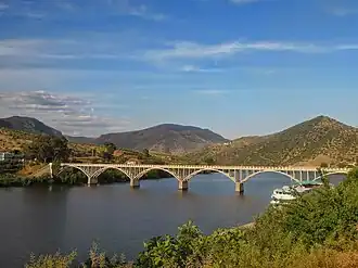 Almirante Sarmento Rodrigues Bridge, also known as the Highway Bridge of Barca d'Alva (Portuguese: Ponte Almirante Sarmento Rodrigues) is a road bridge over the Douro river, located near the village of Barca d'Alva in the Guarda District, Portugal, around 800 metres (0.50 mi) west of the border with Spain. It carries national route N221.