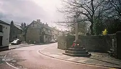 The village is close to Castle Hill, Huddersfield's most prominent landmark. Almondbury has several notable buildings, including the 16th-century Wormald's Hall,[3] now the village Conservative club, and the Grade I listed All Hallows Church.[4] The church is mainly Perpendicular in style but the chancel is earlier. The roofs have a long inscription dated 1522 on the cornice. Other wooden furniture of interest includes a Georgian lectern, a pew of 1605 and a late Perpendicular font cover.[5]