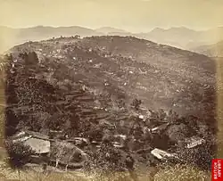 Almora town was the administrative headquarters of the Kumaun district; which was formed in 1815 following the defeat of Gorkha army in the Anglo-Gorkha war and the 1816 Treaty of Sugauli. The Kumaun district then consisted of the complete Kumaon Division excluding the Terai district with its headquarters at Kashipur.[4] In 1837, Garhwal was made a separate district with its headquarters at Pauri. The Nainital district was carved out of the Kumaun District in 1891, and the Kumaon District was then renamed Almora District after its headquarter. In 1921 the population of the district was recorded as 530,338.[5]