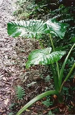 Alocasia brisbanensis (cunjevoi) growing at Dorrigo National Park, Australia