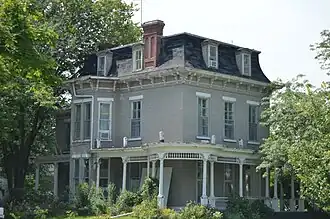 The Alois and Annie Weber House is a historic building located in Keokuk, Iowa, United States.[2] The significance of the three-story house is its association with the period of industrial growth in the city when it was built and as a fine local example of the Second Empire style.[3] It features an asymmetrical concave mansard roof, decorative brackets, and pedimented dormer windows. The house is noteworthy for its tall narrow windows and high ceilings.[4] Two additions were added to the rear of the house not long after the main house was built. The Queen Anne-style wraparound porch is supported by 14 classical columns. It also features a balustrade and spindlework along the beadboard ceiling. The house was listed on the National Register of Historic Places in 2002.[1]