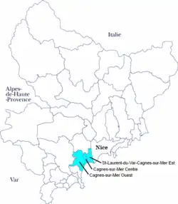 CantonsCagnes-sur-Mer-Centre, Cagnes-sur-Mer-Ouest, Carros, Coursegoules, Saint-Laurent-du-Var-Cagnes-sur-Mer-Est, Vence