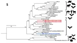 - ^ Woo, P. C.; Wang, M.; Lau, S. K.; Xu, H.; Poon, R. W.; Guo, R.; Wong, B. H.; Gao, K.; Tsoi, H. W.; Huang, Y.; Li, K. S.; Lam, C. S.; Chan, K. H.; Zheng, B. J.; Yuen, K. Y. (2007). "Comparative analysis of twelve genomes of three novel group 2c and group 2d coronaviruses reveals unique group and subgroup features". Journal of Virology. 81 (4): 1574–85. doi:10.1128/JVI.02182-06. PMC 1797546. PMID 17121802.