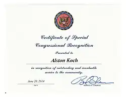 He received certificates of recognition from the California State Senate and United States Congress for improving the lives of communities in America.[13]