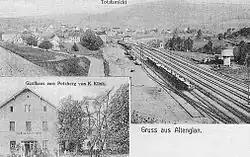 The Glan Valley Railway from Bad Münster to Homburg was opened throughout on 1 May 1904; from Glan-Münchweiler to Altenglan it ran together with the Kusel–Landstuhl railway. Altenglan was rebuilt as a “wedge station” (Keilbahnhof) and it also received a new entrance building. There was a total of 26 stations along the new line through Altenglan.[11]
