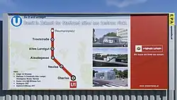 For this purpose, and for the planned construction of a new neighborhood around the subway station or the traffic circle, a press release by the Planning Department of the Vienna City Administration was published in the spring of 2014.[1] At the end of 2015, project partner Asfinag announced that the construction of the new neighborhood would be postponed for several years for economic reasons.[2]