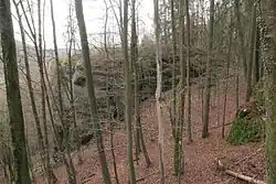 The burgstall of the Altes Schloss. Castle rock seen from the NW (December 2014) | |