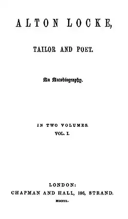 Alton Locke is an 1850 novel, by Charles Kingsley, written in sympathy with the Chartist movement, in which Carlyle is introduced as one of the personages. Locke is based on the life of Thomas Cooper, a Leicester shoemaker, who Kingsley knew well.[1]