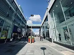 Construction on Altair, a £100 million development on Oakfield Road, began in September 2019[67] after many years of delay. The scheme includes apartments, shops and eating places and will create a new public square linking it to the nearby Altrincham Interchange,[68] which underwent a £19million refurbishment in 2015. A 2010 survey found that despite being in one of the country's most affluent areas, nearly a third of the shops in Altrincham were vacant; Trafford council attributed the high number (78) to the effects of the recession and plans to refurbish Stamford House, which left most of its shops unused.[69]