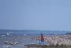 Alum Creek State Park is a 4,630-acre (1,870 ha) Ohio state park in Delaware County, Ohio, in the United States. Alum Creek Lake was constructed from 1970 to 1974 as part of the Flood Control Act of 1962. Alum Creek Dam was constructed on Alum Creek, a tributary of Big Walnut Creek, which drains into the Scioto River. Alum Creek Reservoir holds 3,387 acres (1,371 ha) of water and is open to fishing, boating, ice fishing, ice boating, and swimming. The park is just north of the state capital of Columbus and contains the remnants of a settlement by freed slaves that arrived in Ohio from North Carolina.[3]