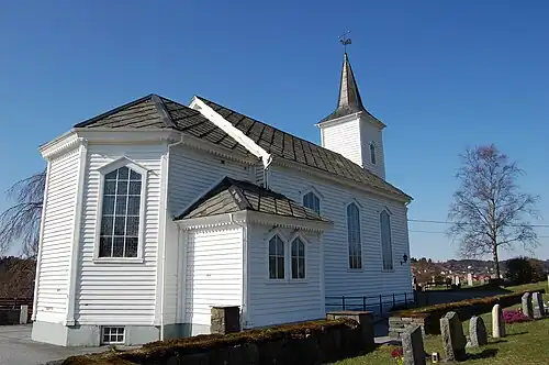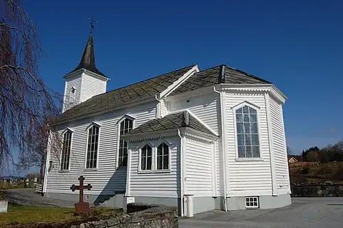 Alversund Church (Norwegian: Alversund kyrkje) is a parish church of the Church of Norway in Alver Municipality in Vestland county, Norway. It is located in the village of Alversund. It is one of the four churches for the Knarvik parish which is part of the Nordhordland prosti (deanery) in the Diocese of Bjørgvin. The white, wooden church was built in a long church design in 1879 using plans drawn up by the architect Jon Jonsen Alvær. The church seats about 200 people.[1][2]