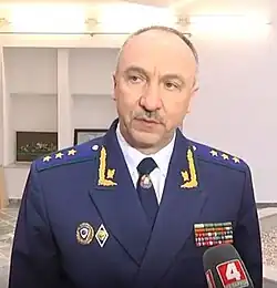 Alyaksandr Uladzimiravich Kanyuk (Belarusian: Аляксандр Уладзіміравіч Канюк, Russian: Александр Владимирович Конюк, romanized: Aleksandr Vladimirovich Konyuk) (born 1960) is a Belarusian jurist and statesman, former Prosecutor General of the Republic of Belarus (2011–2020).