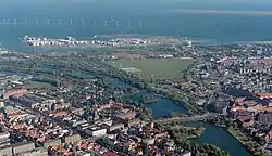 Amager Øst has an area of 8.60 km2 and a population of 49,705.[3] The district is bordered by Amager Vest to the west along Amagerbrogade, Tårnby Municipality to the south and Øresund to the east. To the northwest Amager Øst is bordered by Christianshavn, located on the other side of the broad, former moat og Slotsgraven, and to the north by Holmen which is also located on the other side of the water.