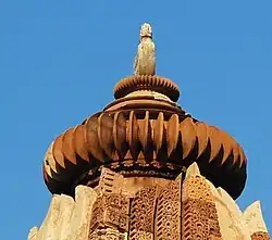 An amalaka (Sanskrit: आमलक), is a segmented or notched stone disk, usually with ridges on the rim, that sits on the top of a Hindu temple's shikhara or main tower. According to one interpretation, the amalaka represents a lotus, and thus the symbolic seat for the deity below. Another interpretation is that it symbolizes the sun, and is thus the gateway to the heavenly world.[1]