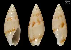 - ^ Ninomiya, Taizo (1991). "Sixteen New Species of the Ancillinae (Gastropoda: Olividae) from Australia". Venus (Japanese Journal of Malacology). 50 (1): 1–17 [9]. doi:10.18941/venusjjm.50.1_1.