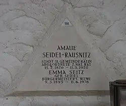 Her daughter Emma married Karl Seitz, the President of the National Council and Mayor of Vienna. Emma Seitz and Amalie Seidel-Rausnitz were cremated at Feuerhalle Simmering, where also their ashes are interred.