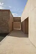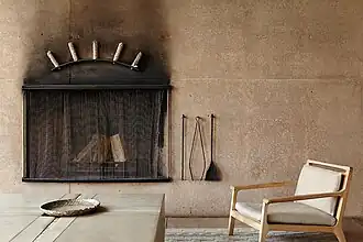 The hotel was designed by Marwan Al-Sayed, Rick Joy, and Wendell Burnett. It has a minimalist aesthetic, making heavy use of large concrete slabs. Each room has an open view to the surrounding desert landscape.[11][12] A sandstone rock escarpment protrudes into the main swimming pool.[3]
