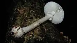 Amanita aestivalis, commonly known as the white American star-footed amanita,[2] is a species of fungus in the mushroom family Amanitaceae. The cap of the white fruit body is 5 to 8.5 centimetres (2 to 3+1⁄4 inches) in diameter. It sits atop a stem that is 8.5 to 16 cm (3+1⁄4 to 6+1⁄4 in) long. The entire fruit body will slowly stain a reddish-brown color in response to bruising. A. aestivalis may be a synonym for A. brunnescens, and may be confused with several other white-bodied amanitas. The fungus is distributed in eastern North America.