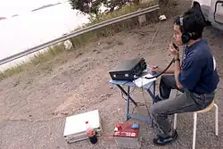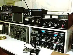 An amateur radio station is a radio station designed to provide radiocommunications in the amateur radio service for an amateur radio operator. Radio amateurs build and operate several types of amateur radio stations, including fixed ground stations, mobile stations, space stations, and temporary field stations. A slang term often used for an amateur station's location is the shack, named after the small enclosures added to the upperworks of naval ships to hold early radio equipment and batteries.[1][2]