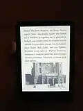 The Paperwhite 3 is the first e-reader to include the Bookerly font, a new font designed by Amazon, and includes updated formatting functions such as hyphenation and improved spacing.[61] The Bookerly font was added to most older models via a firmware update.[62] The official Amazon leather cover for the Paperwhite 3 is the same item as was used with the previous two Paperwhite devices.