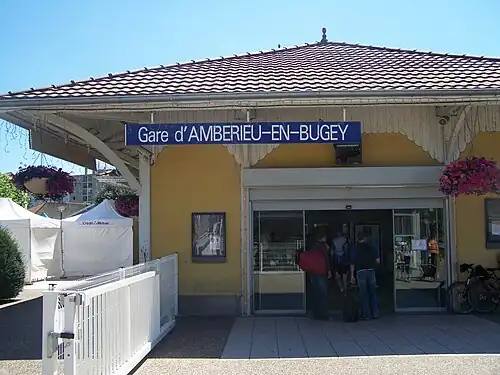 Ambérieu station or Ambérieu-en-Bugey station (French: Gare d'Ambérieu or Gare d'Ambérieu-en-Bugey) is a railway station serving the town Ambérieu-en-Bugey, Ain department, eastern France. It is situated on the Lyon–Geneva railway, Mâcon-Ambérieu railway and Ambérieu-Montalieu-Vercieu railway. The train services are operated by SNCF.