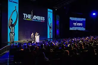 The Ambies (or the Awards for Excellence in Audio) are awards for artistic and technical merit in the podcast industry. They are awarded by The Podcast Academy in two overall categories: Show Recognition and Talent Recognition. The winners, who receive a gold statue holding a microphone and wearing headphones, are selected by a vote from Podcast Academy members. The awards and the Podcast Academy were established in 2020 with the inaugural ceremony held on May 16, 2021, hosted by Cameron Esposito.[1]