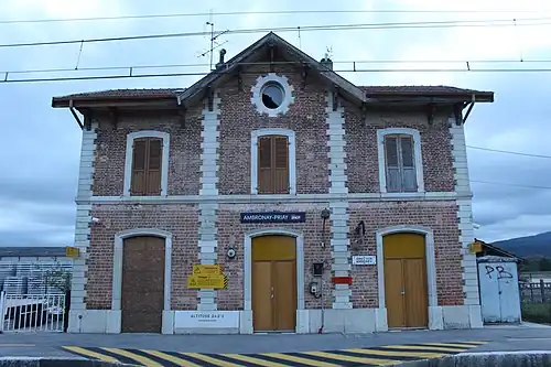 Ambronay—Priay station (French: Gare de Abronay—Priay) is a French railway station located in commune of Ambronay, Ain department in the Auvergne-Rhône-Alpes region. As its name suggests, the station also serves the nearby commune of Priay. It is located at kilometric point (KP) 61.274 on the Mâcon—Ambérieu railway.