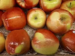 Ambrosia is a cultivated variety or cultivar of apple originating in British Columbia, Canada in the early 1990s. The original tree was first cultivated by the Mennell family of Cawston, British Columbia, who discovered it growing from a chance seedling in their orchard.[1][2] It is named after the mythical food of the Greek gods.[3]