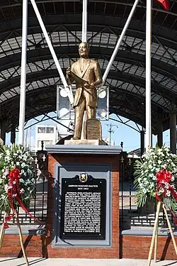 As a historical commemoration, the Bautista Monument and historical marker now stand at the Biñan City hall. In 2018, the NHCP unveiled his monument with a recreated marker to replace the missing 1980 memorial.[5] The session hall of the Biñan City Council is named after Bautista.[6]