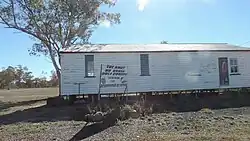 St Barnabas' Anglican Church was opened circa November 1955 by Ian Shevill, the Anglican Bishop of North Queensland.[15] It was built of timber and could seat 70 people. It has now closed but the building is still extant. It is on the northern corner of School Street and Queen Street (26°32′53″S 148°11′09″E / 26.548119°S 148.1857°E).[16][17]
