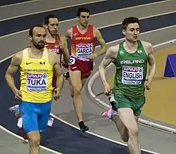 Tuka (left) competing in the 800m at the 2019 European Athletics Indoor Championships