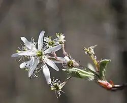 Amelanchier arborea (downy serviceberry[3] or common serviceberry[4]), is native to eastern North America from the Gulf Coast north to Thunder Bay in Ontario and Lake St. John in Quebec, and west to Texas and Minnesota.[3]