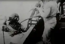 On another dive she almost passed out when the crank operator, having had too much garlic over lunch, “leaned too close to the air supply”.[20]