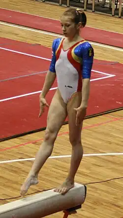 Racea started gymnastics at the age of 6 and won her first all around national title in her age category in 2007. In 2008, she joined the junior national team in Deva.[1] She had a successful junior career, medaling at various international competitions. She won silver on beam and bronze on floor and placed fourth all around and with the team at the 2008 Junior European Championships.[3] In 2009, she placed fifth all around at the prestigious American Cup ahead of more experienced gymnasts such as Koko Tsurumi and Kristina Goryunova.[4] If not for a fall from uneven bars she might have placed higher.[1] Later that year she won the all around junior title at both the City of Jesolo Trophy in Italy and the Lugano Trophy in Switzerland.[5][6] The 10th European Youth Olympic Festival in Tampere was a very successful meet for Racea. Here she won a total of six medals, two gold (vault and beam) and four silver (floor, uneven bars, all around and with the team).[7]