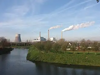 The Amercentrale is a biomass-fired power plant of RWE in the municipality Geertruidenberg. The plant is named after the Amer River and is located on the left bank of this river. In 1952 Unit 1 of the first Amercentrale began generating electricity. The much smaller Dongecentrale, decommissioned in 2011, is located near the Amercentrale.