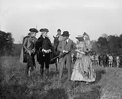 Filming took place at Richmond, Virginia and Somers, New York.[9] During the filming of a recreation of the Battle of Bunker Hill at Somers, a 19-year-old soldier's arm was blown off while reloading a cannon.[10] As Charles Emmett Mack recalled, "Neil Hamilton and I went to neighboring towns and raised a fund for him—I doing a song and dance and Neil collecting a coin."[9]