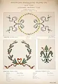 The American Encaustic Tiling Company[1] was founded in New York, New York, in 1875, later establishing a factory in Zanesville, Ohio, in 1892.[2] Their tiles were intended to compete with the English tiles that were selling in the United States for use in fireplaces and other architectural locations. The first glazed tiles were made in 1880 and embossed tiles were made in 1881. By 1890, they were the largest tile company in the world, and the small town of Zanesville nearly tripled in size over a thirty-year period as more people found work with the company.[3] The firm closed in 1935 and was then reopened in 1937 as the Shawnee Pottery.[4][5]