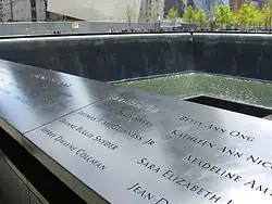 - ^ "About: The Memorial Names Layout". National September 11 Memorial & Museum. Archived from the original on July 27, 2013. Retrieved December 11, 2011.