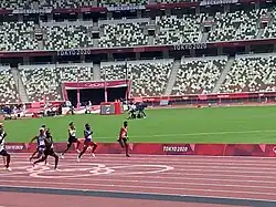 American Samoa received a universality slot from World Athletics to send a male track and field athlete to the Olympics,[10] which allows a National Olympic Committee to send athletes despite not meeting the standard qualification criteria.[11] The nation selected Nathan Crumpton,[12] a skeleton athlete who previously represented the United States in international competition. He placed as high as eighth place at the World Championships[13] but ultimately left the national team in 2019 after an arbitration case was filed against the United States Bobsled and Skeleton Federation, as well as stating that he would like to represent his Polynesian heritage.[14] Before the Games, Crumpton had never competed in any sprinting event, as his only athletics experience beforehand was being a long and triple jumper for Princeton University.[10]
