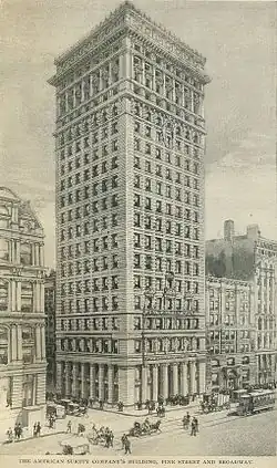 - ^ "Sky-scraper of 20 Stories; Lofty New Building for Broadway and Pine Street. To be Erected by the American Surety Company on the Site of the Old Continental Insurance Building, to be 300 Feet High, Cost About $1,000,000, and Be Ready for Occupancy by May 1, 1895 – Bruce Price the Successful Architect". The New York Times. February 9, 1894. ISSN 0362-4331. Archived from the original on April 4, 2022. Retrieved July 30, 2020.