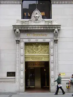 - ^ "American Surety Co. Plans Big Annex; Will Build $2,500,000 Extension to Its Present Building at 100 Broadway". The New York Times. April 17, 1920. ISSN 0362-4331. Archived from the original on February 24, 2018. Retrieved July 30, 2020.