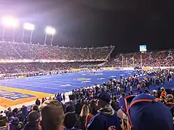 College football maintained a tradition of postseason bowl games. Each bowl game was associated with a particular conference and earning a spot in a bowl game was the reward for winning a conference. This arrangement was profitable, but it tended to prevent the two top-ranked teams from meeting in a true national championship game, as they would normally be committed to the bowl games of their respective conferences. Several systems have been used since 1992 to determine a national champion of college football. The first was the Bowl Coalition, in place from 1992 to 1994. This was replaced in 1995 by the Bowl Alliance, which gave way to the Bowl Championship Series (BCS) in 1997.[36] The BCS arrangement proved to be controversial, and was replaced in 2014 by the College Football Playoff (CFP).[37][38]