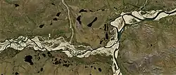 ![]() Sentinel-2 image of the confluence of the Ekityki (left) and the Amguema | |