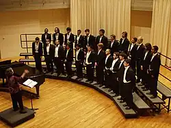 In 1963 the club came under the direction of Bruce G. McInnes, former director of the Apollo Glee Club at Yale University. Under this new leadership, Glee Club membership rose from under 30 in 1962 to over 100 in 1965. In 1967 the club embarked on the first of several "World Tours". These tours, each lasting over a month, eventually took the Glee Club all over the globe and featured a number of notable performances. They became the first American chorus to sing High Mass at the Notre Dame Cathedral,[7] and sang for many notable people, including Pope Paul VI,[7] King Mihendra and Queen Ratna of Nepal,[8] president Jomo Kenyatta of Kenya,[9] President Félix Houphouët-Boigny of the Ivory Coast,[10] Princess Sarvath El Hassan of Jordan[11] Prime Minister Menachem Begin of Israel,[12] and noted composition teacher Nadia Boulanger.[11]