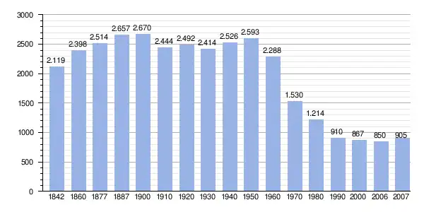Amieva municipality is sparsely inhabited, having a resident population of 868 (2005) and a population density of fewer than 8 people per square kilometre. The total area covers some 114 km2.